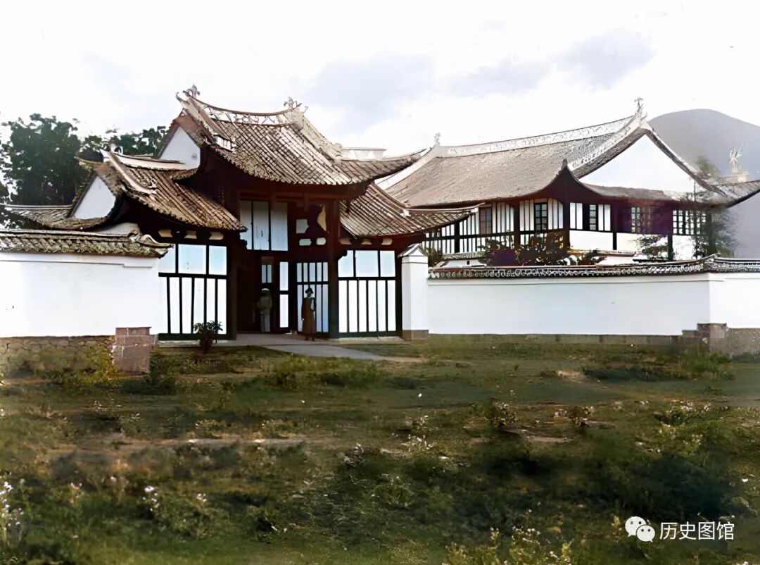这是1917年腾冲县当地的一处新建建筑,粉墙黛瓦飞檐高挑,很是壮观。但是没有找到相关文字记载,这里很有可能是当时在腾冲任职的英国人住宅。