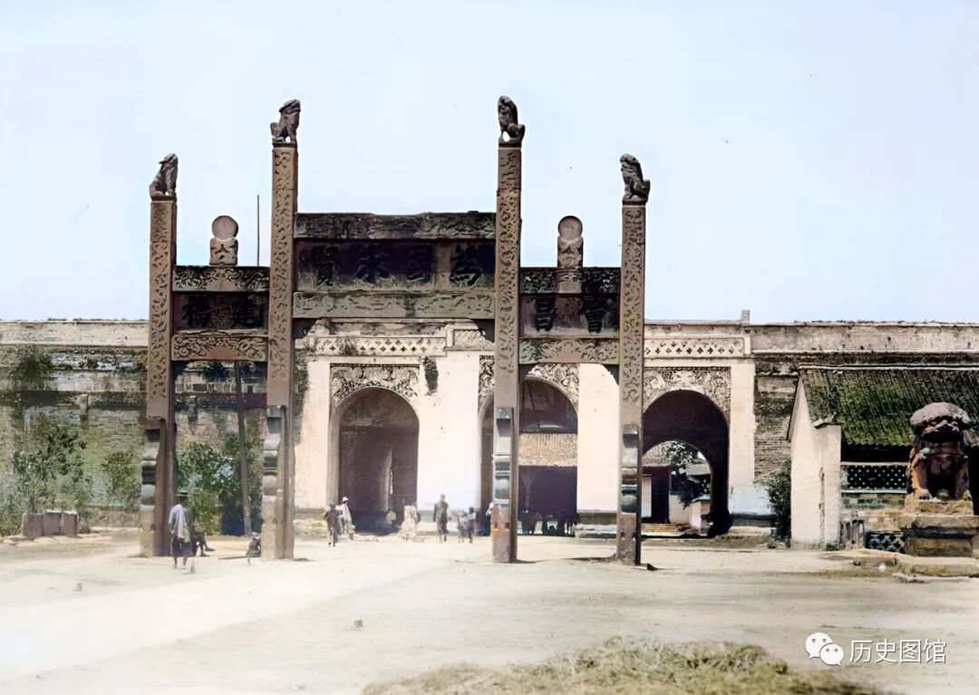 1930年,成都蜀王府南大门,看上去非常气派。朝南的三券城门前,矗立着一座三间四柱二楼的石牌楼。牌坊上方四个大字:为国求贤;左右两边各有两字:会昌、建福。