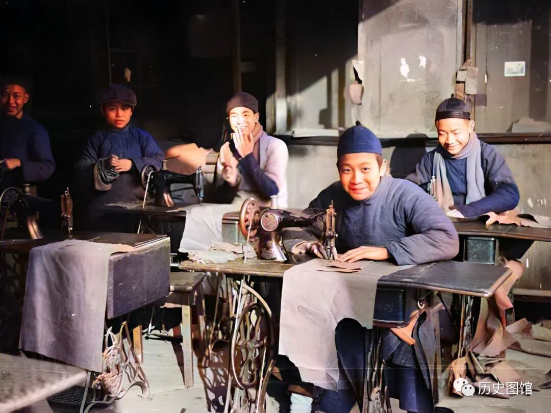 1938年,成都的一间裁缝铺里,几名工人正蹬着缝纫机制作衣服,他们是熟练工,脸上都带着微笑,看得出对自己的工作很满意。