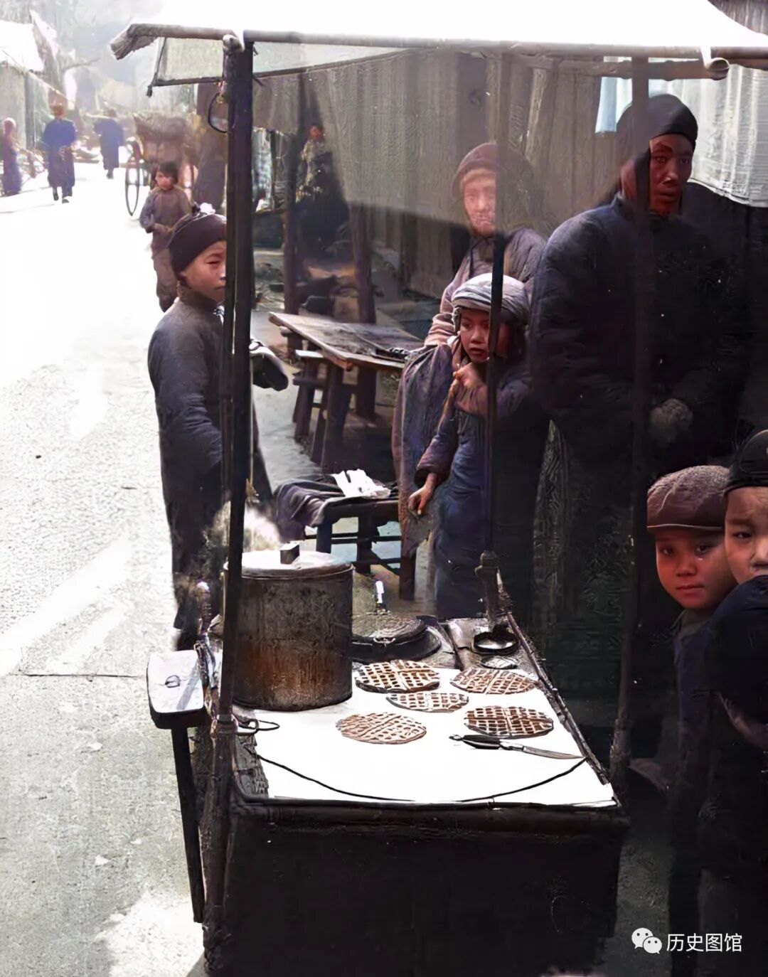1938年冬,成都街头的一个小吃摊前,围着几个孩子。几十年前的成都街头,人间烟火气如此的令人熟悉,特色美食更是让人直流口水。