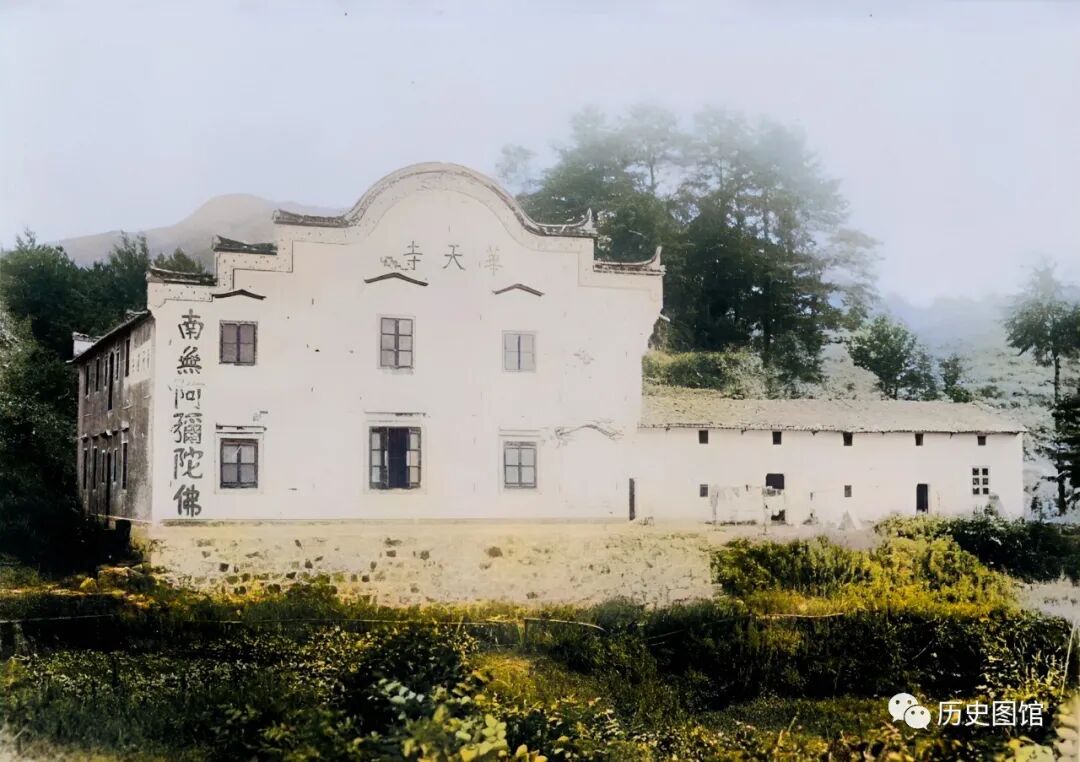 1929年的安徽九华山华天寺风貌。华天寺,建于1922年,康有为曾经为其写下题额“华天禅寺”。照片里白色的主体建筑,是大雄宝殿。照片拍摄于1929年。