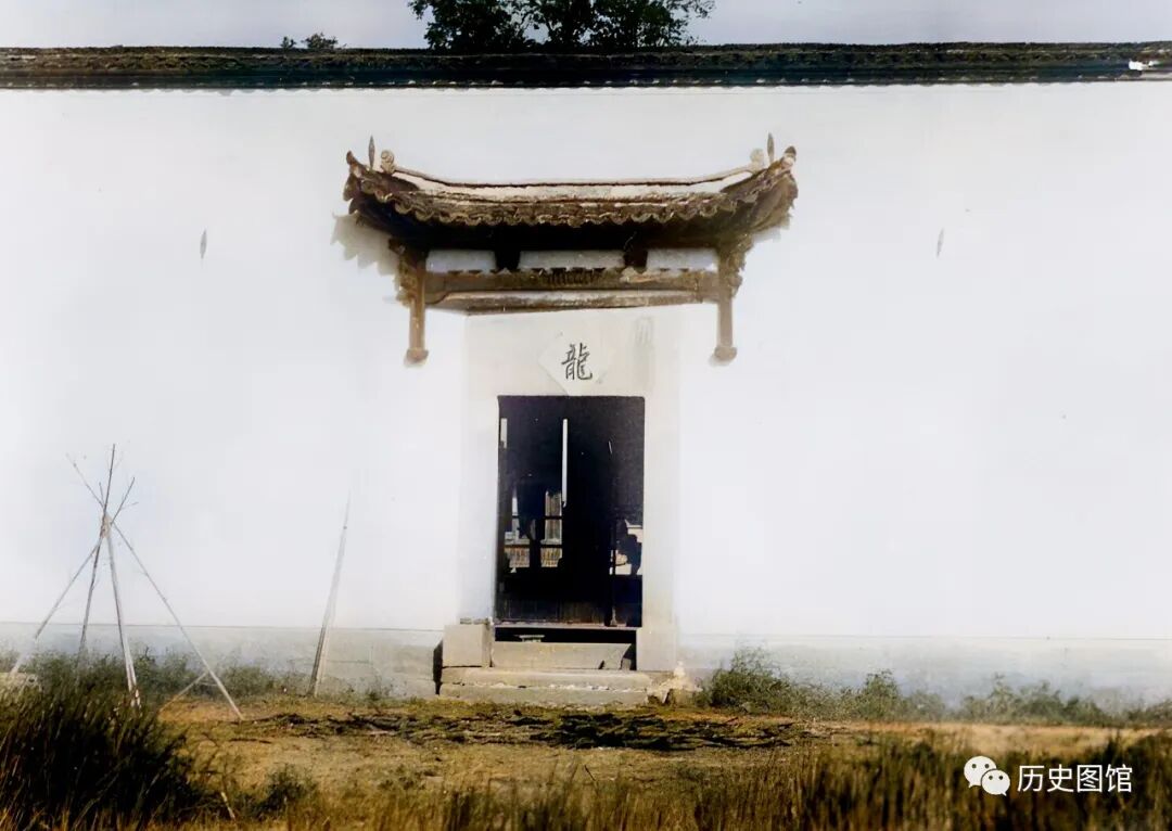这是1929年的袛园禅寺山门景象。袛园禅寺原名“祗树庵”,始建于明代。壮观的重檐山门上部,匾额上“袛园禅寺”四个大字分外醒目。山门两侧墙壁上写着“佛日”、“曾辉”。