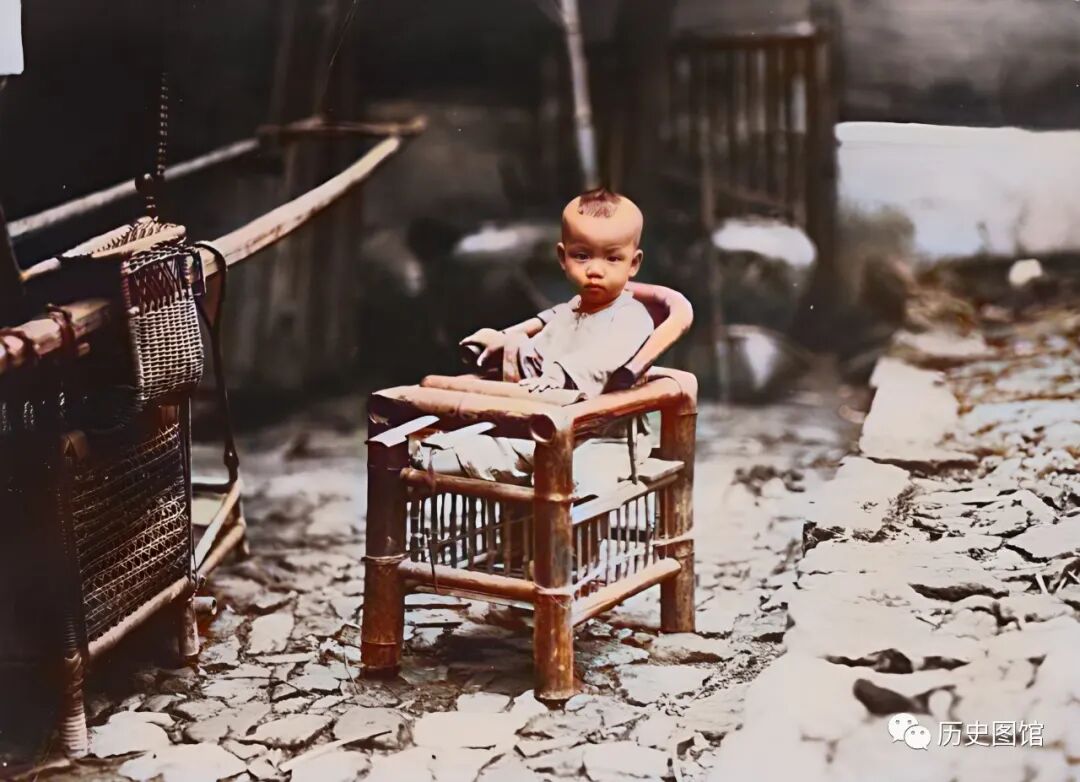 安徽九华山的一个村子里,一名小孩坐在儿童椅里。这把椅子是用竹子做的,十分结实。这种儿童椅很实用,将小孩子放到里面,大人就能腾出手来干别的事情。