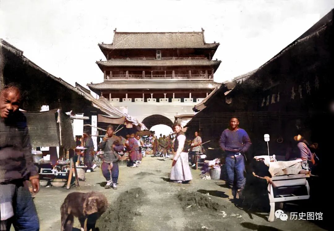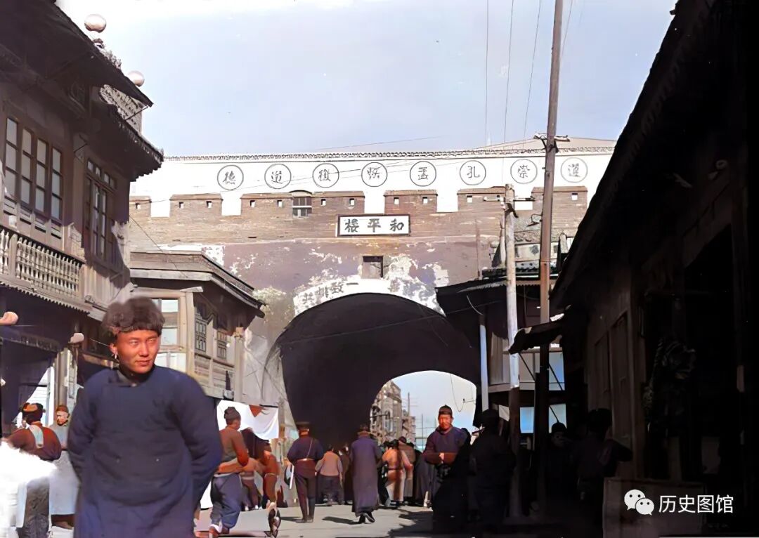 这座高大的城楼,是当时安阳的北城门——拱辰门。城楼高大壮观,拱形门洞上写着“兴国楼”字样。城门前街道上,人来人往很热闹。照片拍摄于1939年,当时安阳已被日军占领。