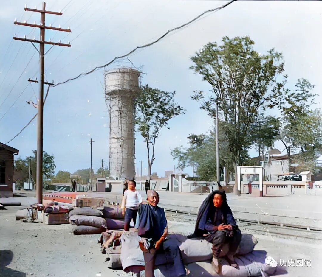 照片中有一座正在建设的高塔,这就是当时在建的火车站水塔,塔身四周高高的脚手架清晰可见。1949年,解放安阳战斗中,这里曾经是指挥所。它是安阳市现存最早的水塔。不过,2020年水塔被拆除。