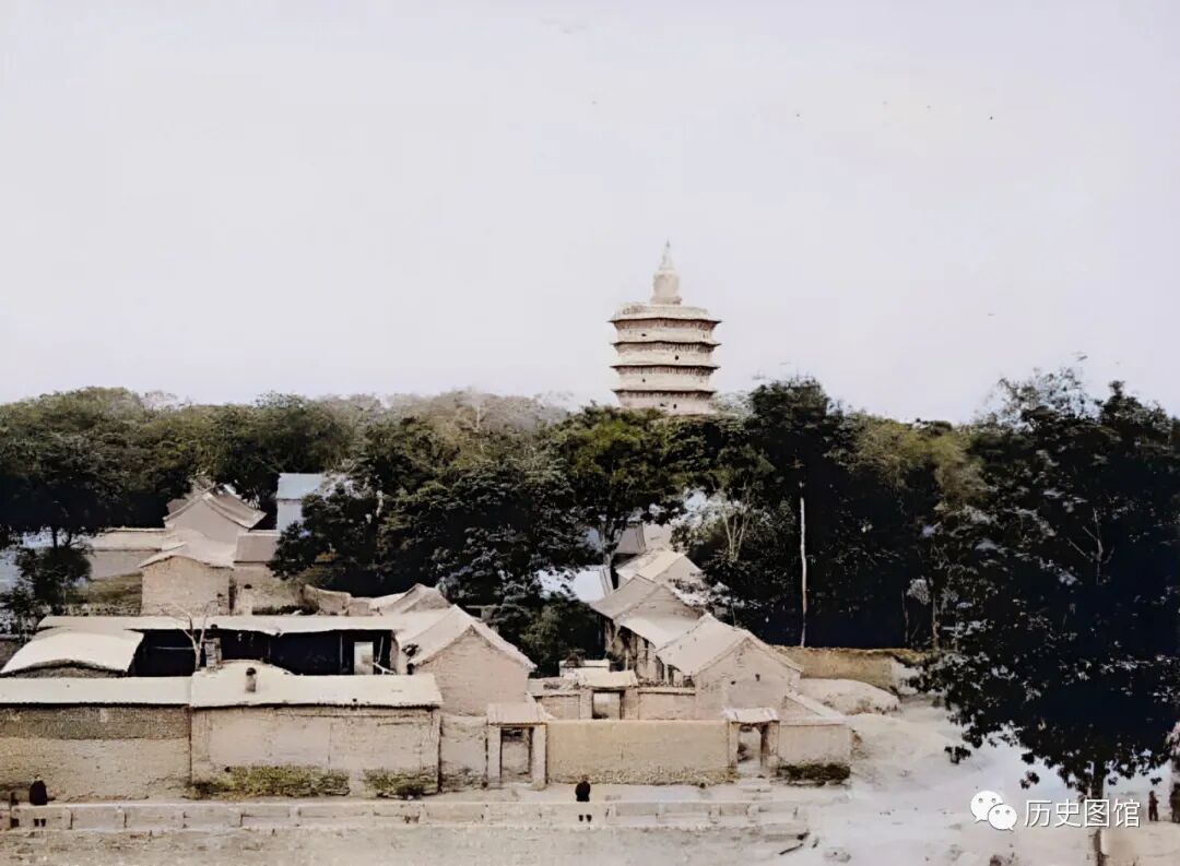 这是站在高处远眺安阳的文峰塔,高大的文峰塔,突出树冠之上。在当时,绝对是安阳的地标性建筑。近处,有一些民居和院落,具有典型的北方建筑风格。