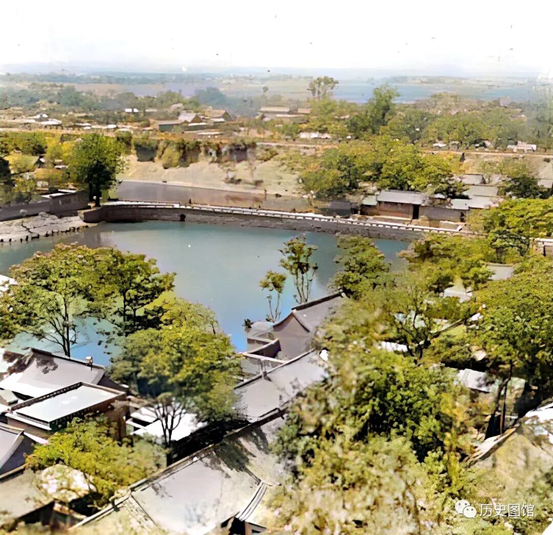 这是民国时期安阳三角湖风光。三角湖位于旧安阳城的西南角,在过去,这里是安阳城内粮仓所在地,临近三角湖,就近取水消防以备不测。