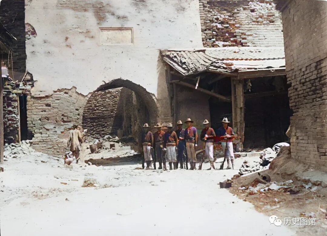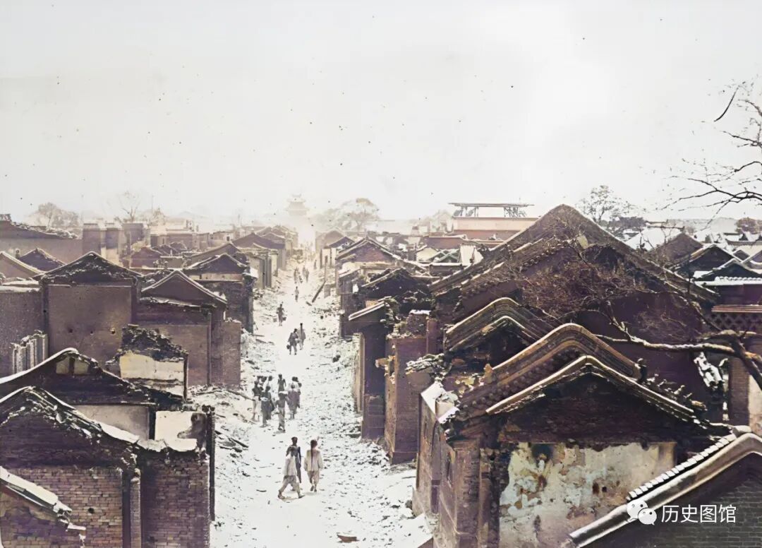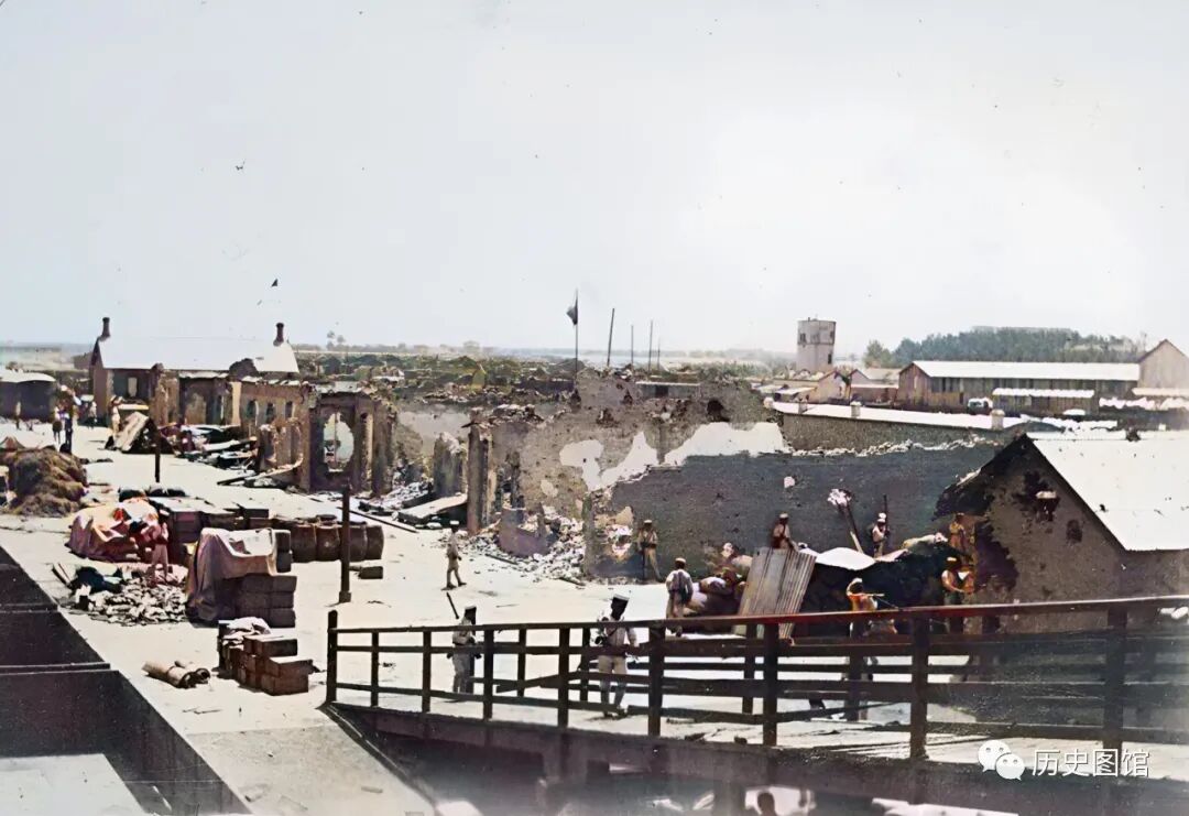 7月14日,日军炸塌城墙,率先攻入城中,联军部队相继跟进。清军伤亡过大,力不能敌,撤出战斗,八国联军占领天津!下面一组老照片(黑白片上色),来自英国伦敦国家档案馆,是天津沦陷后的景象,到处是断壁残垣,八国联军的行径令人发指!