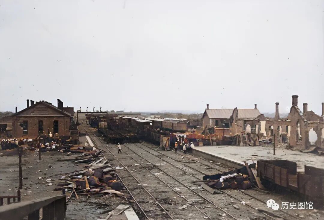 八国联军的炮火,将火车站上的建筑炸成了废墟,到处是断壁残垣。虽然还有些货物堆放在站台上,但火车已经停运,根本无法运送到目的地。