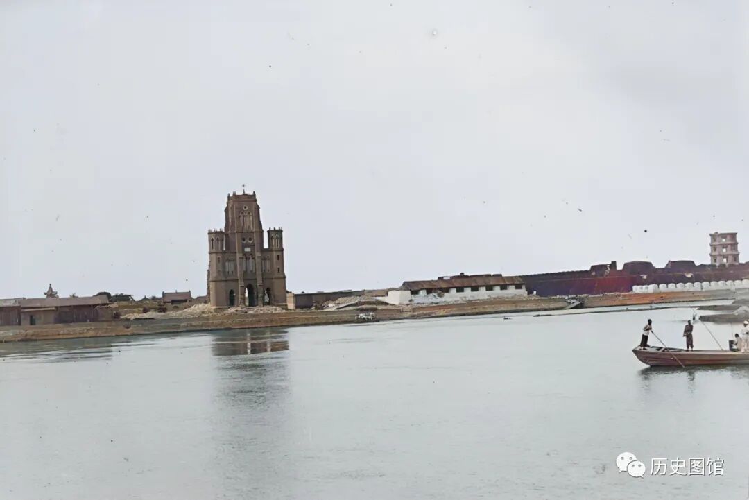 在照片最右侧,就是著名的黑炮台所在地,高高耸立的建筑是瞭望塔。八国联军进攻天津时,用巨炮轰击黑炮台,炮台固若金汤,炮弹只是将瞭望塔炸坏。