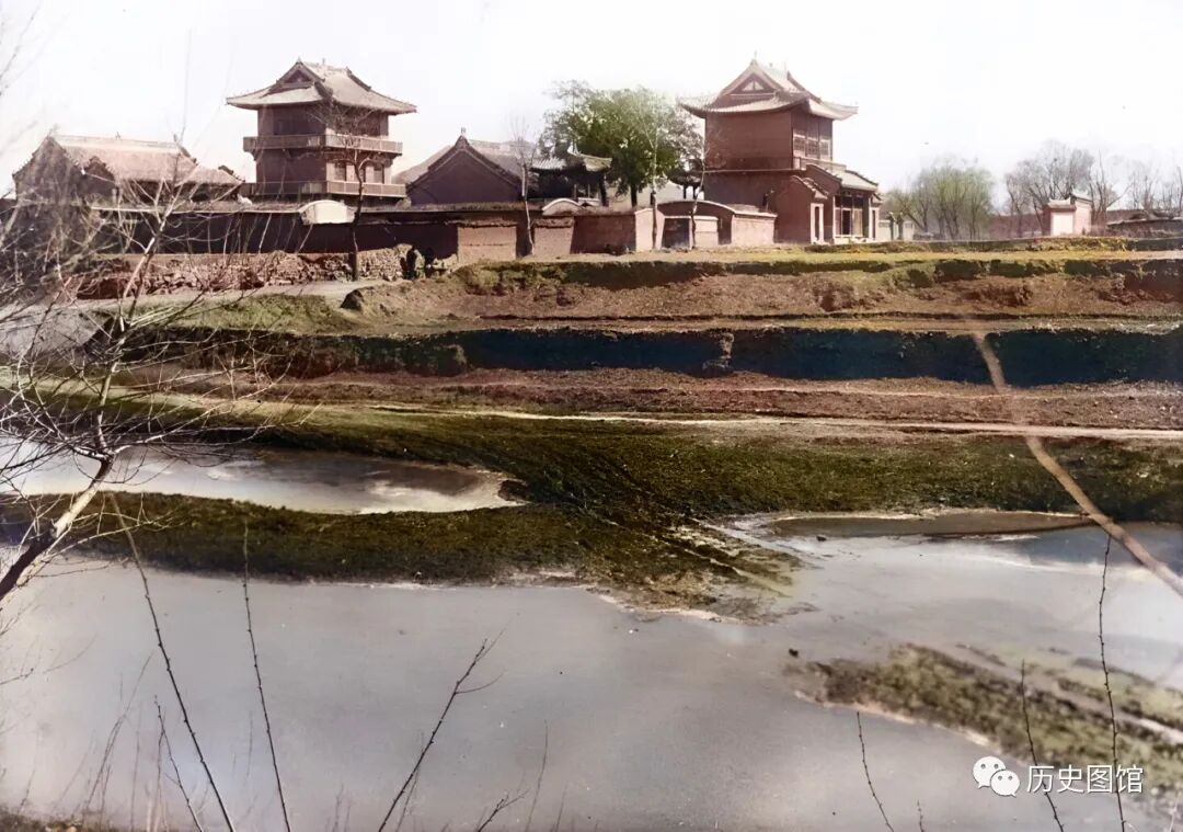 有人说这是30年代的兴城古城。其实并不是,照片中这座城并不大,而且两座城楼离得太近了。因此判断这并不是兴城,而是位于兴城郊外的一处建筑群,可能是一处庙宇。