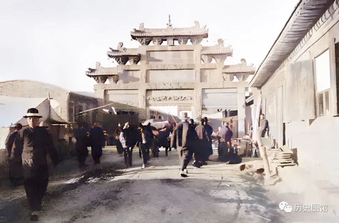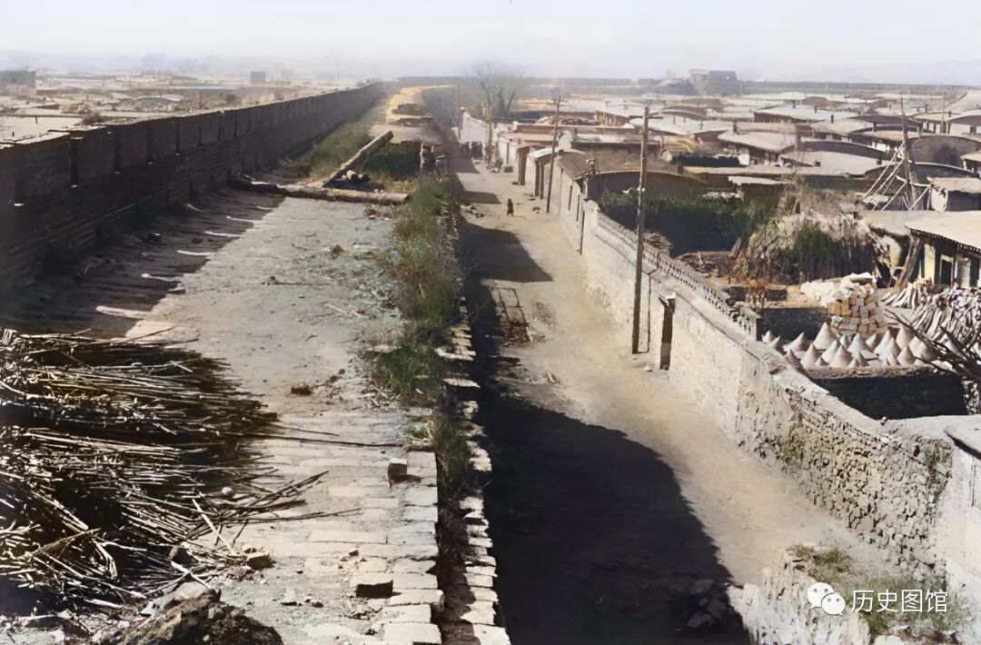 城墙里面,就是密密麻麻的民宅了。房屋是具有当地特色的圆弧状屋顶,上面有烟囱。照片拍摄于1935年。