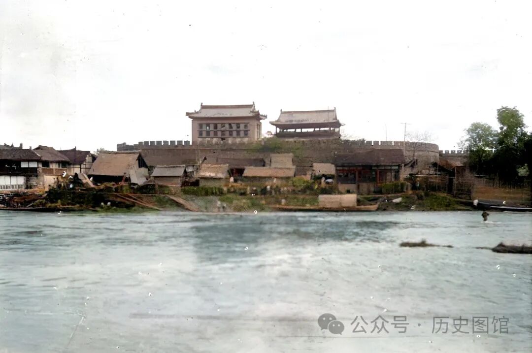 这就是当时的成都南门——江桥门,上面的城楼叫“浣溪楼”。壮观的箭楼和巨大的瓮城清晰可见,城门外建有很多民居,面前这条大河就是锦江,江水静静流淌了千百年,也滋润着锦江两岸成都儿女的心田。