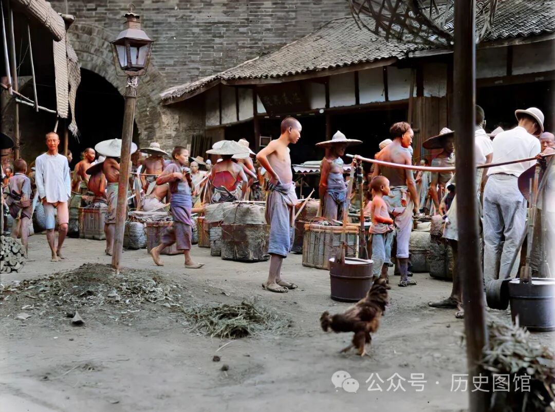人常说蜀道难难于上青天。在过去,成都当地的交通还不发达,绝大多数货物都要靠人力来搬运,挑夫从事的工作,绝对是体力活,他们以挑运货物、行李谋生,养家糊口。