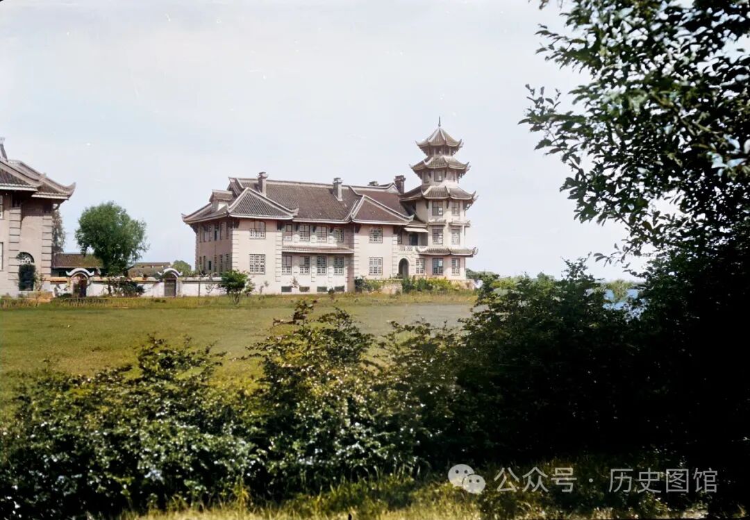 1905年,由英、美、加拿大三国教会在成都南创办了华西协和大学。1910年建成开学。照片中的校园,教学楼等建筑中西合璧,配有宽敞的操场,校园环境优美。