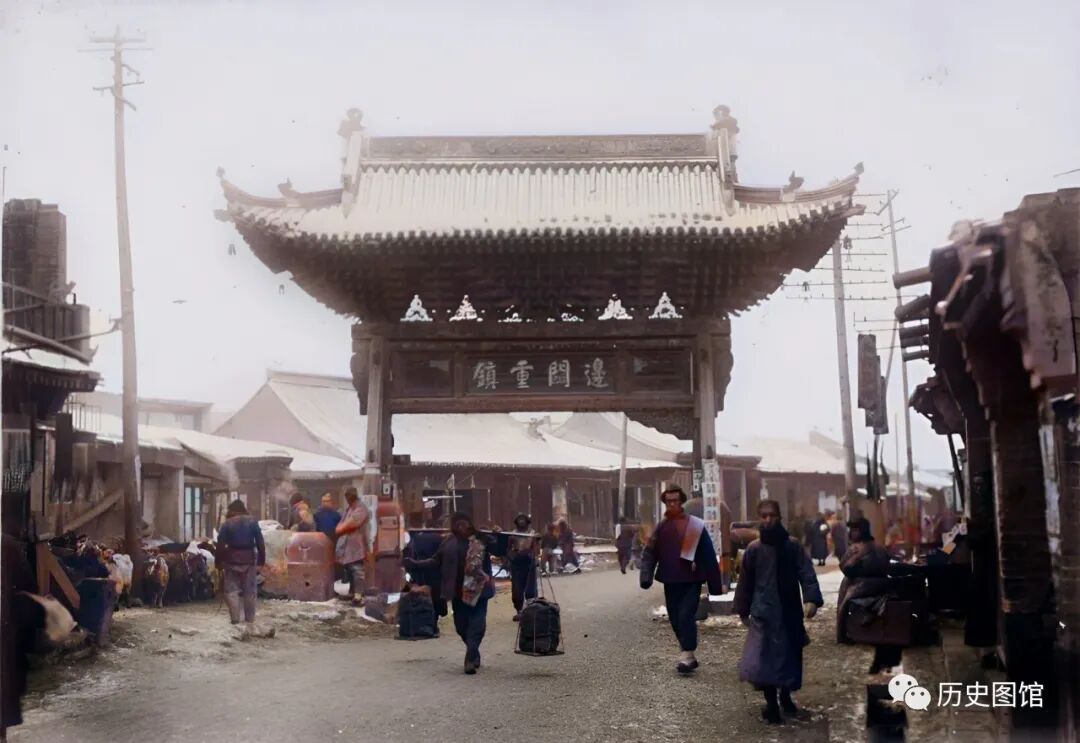 这是张家口城内的一条街道,迎面矗立着一座高大的牌坊,牌坊上书四个大字“边关重镇”。街道两旁的建筑古色古香,街道上人来人往。