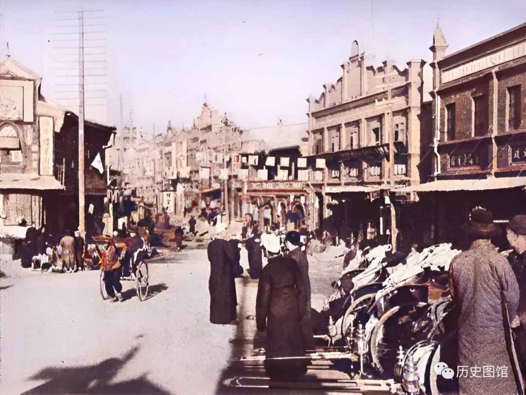 阳光明媚,有几辆黄包车停在路边,车夫站在车边等待载客。从这张照片,也能看出当时的张家口是多么的繁华热闹。