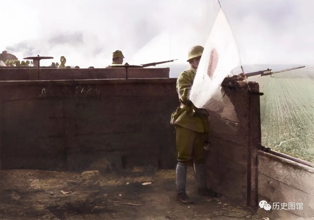 这列正在田野上行驶的火车,是日军的一列运兵车。车厢里站满了全副武装的日军,上了刺刀的枪口朝外,耀武扬威。