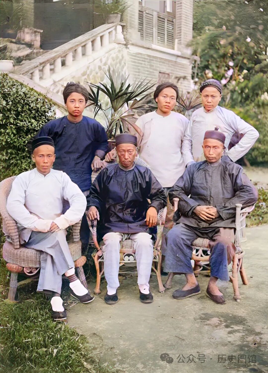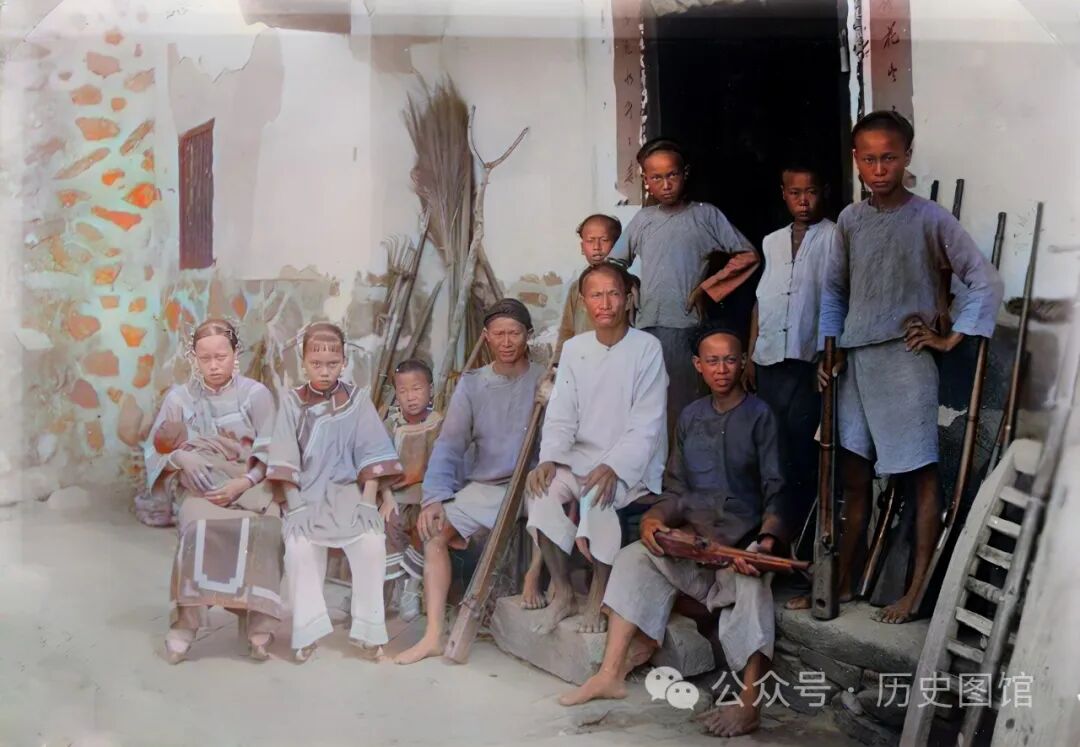 1902年,福建永春当地的一个猎户人家。全家老少男丁都是出色的猎手,他们手里拿着笨重的火铳,虽然原始,但这绝对是打虎神器。家里的妇女则抱着孩子坐在一旁。