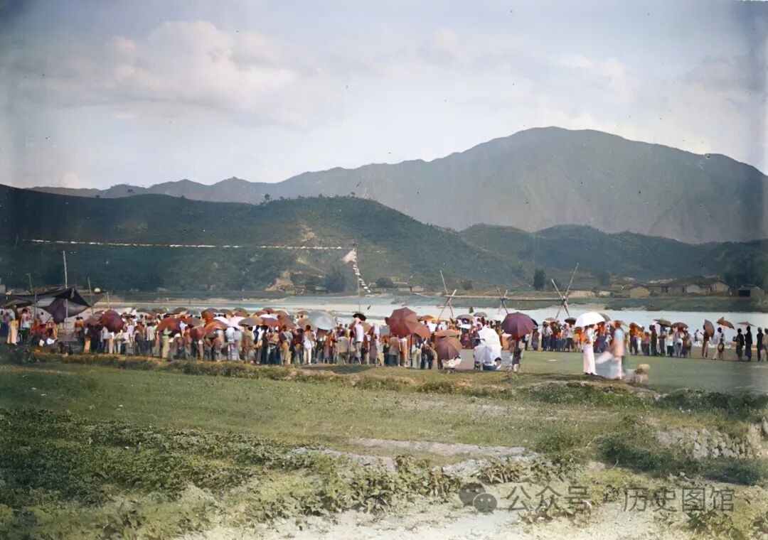 1908年,一场运动会正在永春的江边举行。现场的立柱上,扯着彩旗,运动场两侧站满了观众。天气炎热,很多人都打着伞。