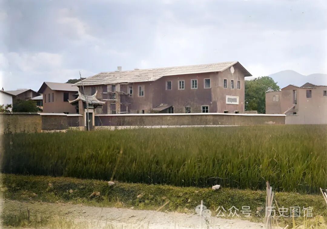照片中这处建筑,是当时永春新建的一所医院。主体建筑上,还能看到脚手架,可见这所医院还在建设之中。医院的外面,是绿油油的稻田。照片拍摄于1904年。