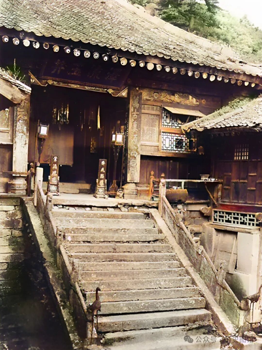 1935年,华山金天宫景象。金天宫,又称白帝祠,始建于魏太武年间(424-425年)。位于华山南峰松桧峰上,是华山主峰祭祀华山神的主庙、华山上最宏伟壮观的传统宫殿建筑。