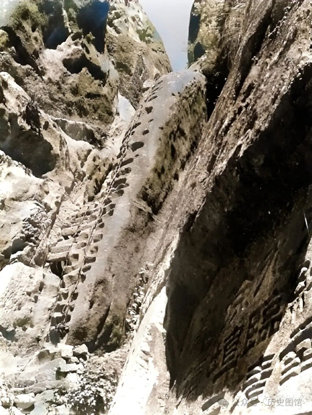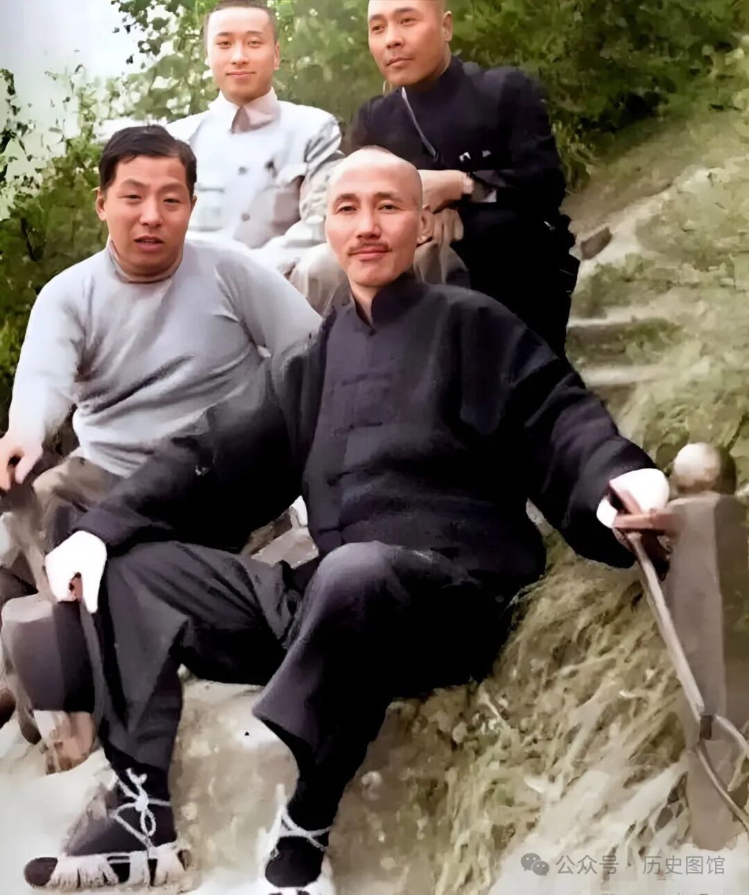 这张照片拍摄于1936年,有一行人在登临华山途中,坐在台阶上休息。你能看出这几个人是谁吗?在华山老君犁沟石壁上,刻有有“民族本色”四个字,很有气势。据说,是前面这个穿深色衣服的人登华山时写的。不过,也有史学家认为,这几个字并非出自他之手。