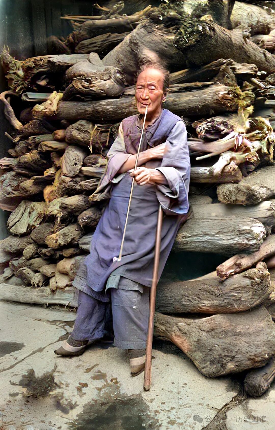 在茂县一座村寨里,甘博看到了一名老年女子。她拄着拐杖,靠在一堆干柴上,正在吸吸旱烟。长长的铜制烟袋锅,非常有感觉。甘博看到,这名女子有一双小脚,穿着三寸金莲。缠足是中国古代一种陋习。是用布将女性双脚紧紧缠裹,使之畸形变小。
