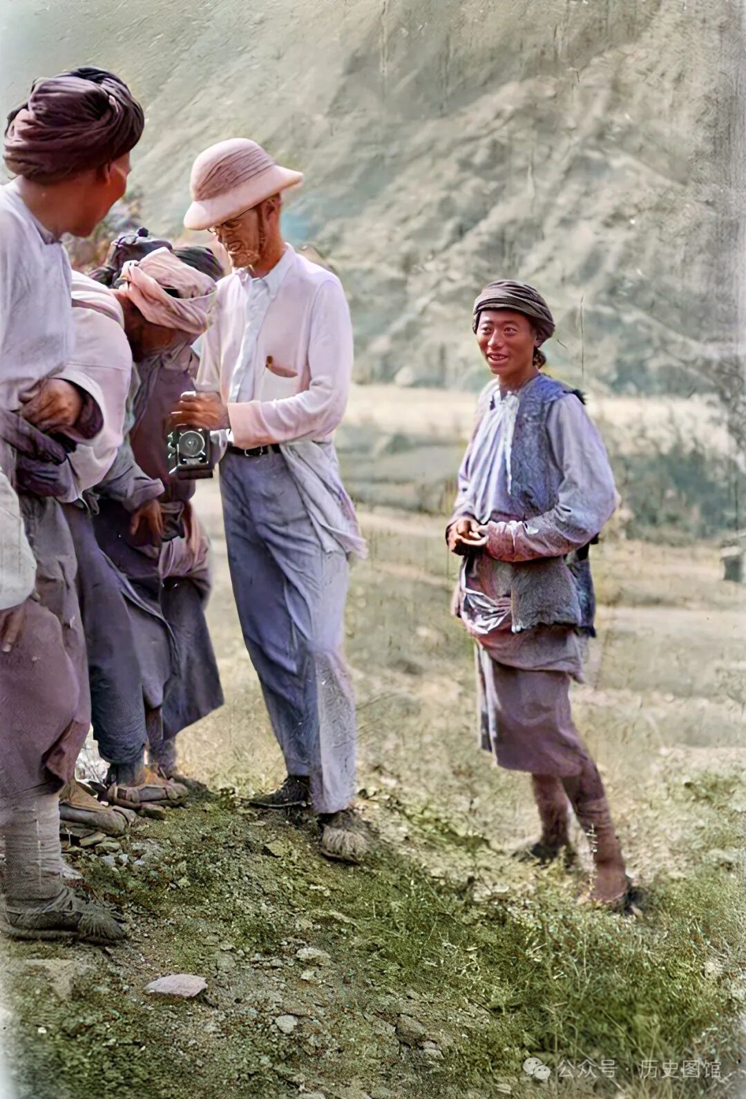 甘博一行人在茂县考察途中,遇到一群当地人。他们对甘博手中的照相机感觉很好奇,就凑近观看。甘博向他们演示相机的工作原理以及如何使用相机。