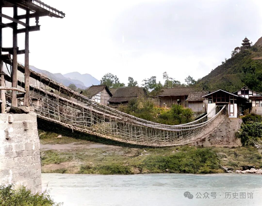 甘博一行人来到了茂县的土门镇。在这里,他们看到了一座十分奇特的桥——悬索桥。桥体用几根粗绳和木板组成,两端固定在桥楼上。有人说这座桥不在茂县,而在当时的北川。