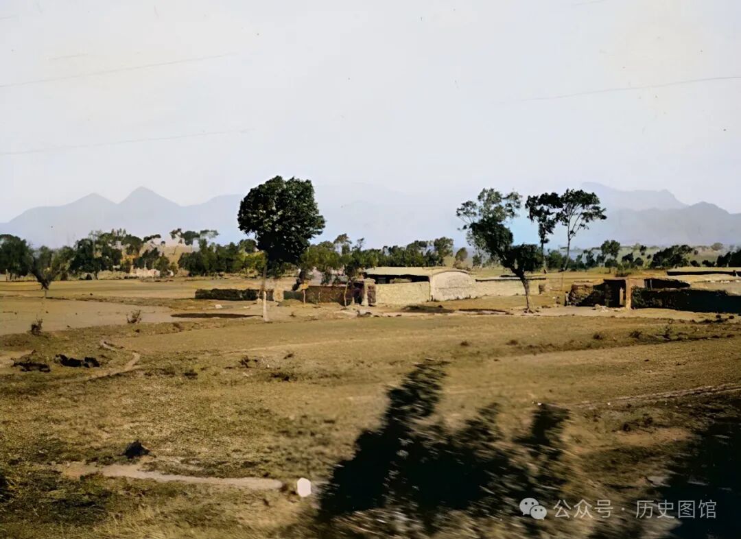 1909年,沈阳城外的景象。在大片的田野里,点缀着一些小村庄。远处,青山连绵不绝。