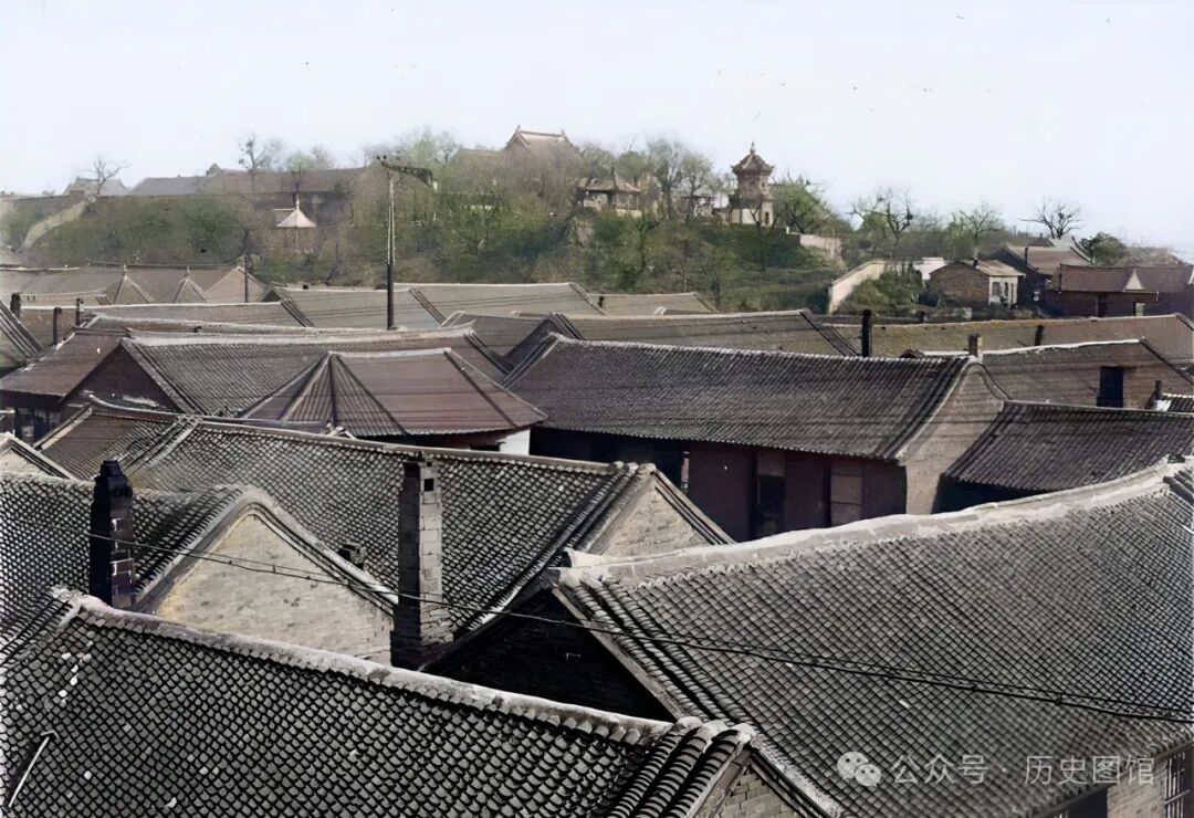 1941年,站在高处,俯瞰海城城区。建筑为砖瓦结构,大多都是四合院。房屋一栋挨着一栋,鳞次栉比。远处的高地即厝石山公园,始建于清光绪三十一年(1905年)。