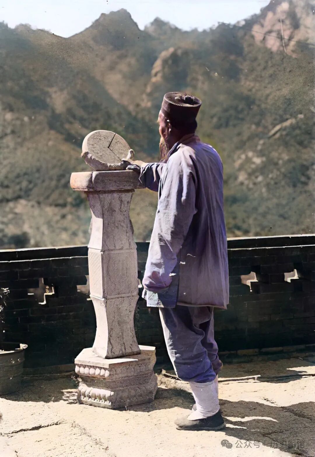 1930年,千山无量观里的一名道士,正在观察日晷。日晷,是古代观测日影计时的仪器。主要由一根投射太阳阴影的指标、承受指标投影的投影面 (即晷面) 和晷面上的刻度线组成。不得不赞叹,我国古代劳动人们的聪明才智。