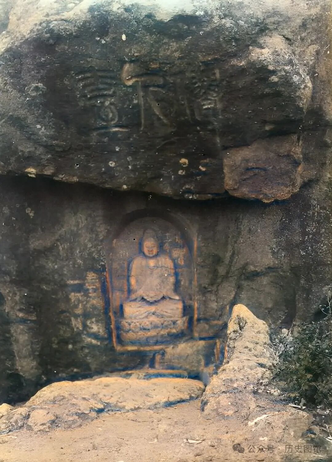 30年代,千山一块巨大的石壁上,能清楚地看到年代久远的石刻。千山历史久远,早在北魏时,千山就有了佛教徒的踪迹。明清时期的摩崖石刻主要分布在千山的庙宇道观间,较为丰富地体现了千山地区独特的宗教文化。