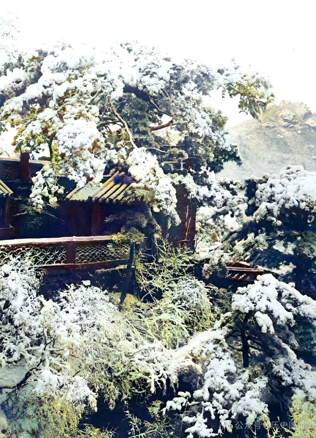 30年代,千山上美丽的雪景。在一处寺院楼阁外,松树枝上落满了雪,远远望去,犹如盛开的白花。古建、松树、雪景,混棉顿时有了诗意。是啊,这样漂亮的景色,只有在东北地区才能见到。