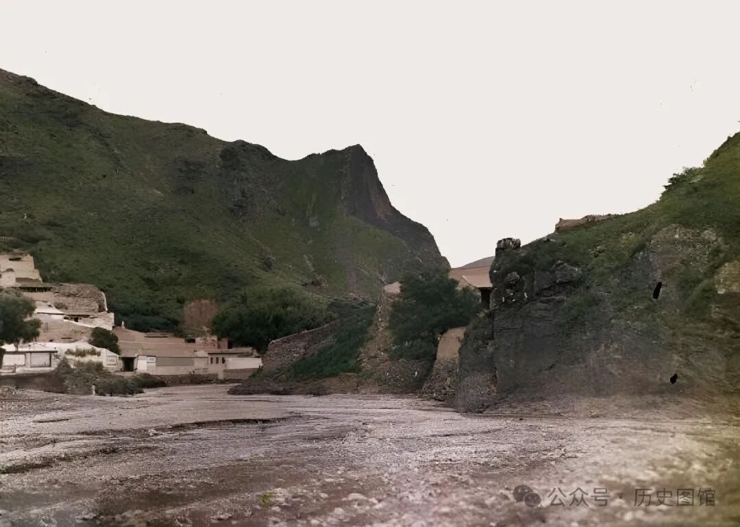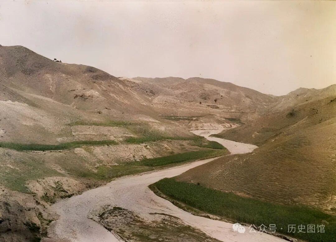 1912年,河北张家口郊外的一条河流。河道蜿蜒曲折,在两侧的山坡上,开辟有农田,生长着绿油油的庄稼。人类的生产生活,往往依赖河流,河流给人们提供了生命的水源。