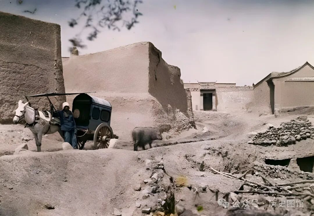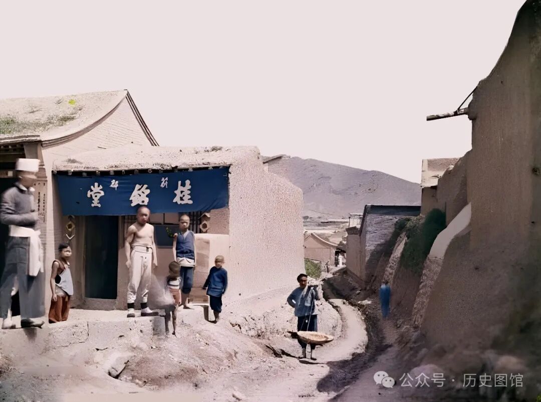 1912年,张家口郊外景象,原照片并没有标注文字说明。推测可能是一个驿站或者是村落。张家口是对外贸易的塞外重镇,曾有“陆路商埠”之称。