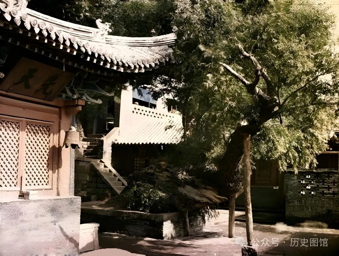 这张照片,也是拍摄于当地一座寺庙。虽然看不清寺庙的全部,但是楼阁雕梁画栋,飞檐高挑。屋檐下悬挂的牌匾上写着“光天”二字。寺内苍松翠柏,亭台楼阁,很有意境。