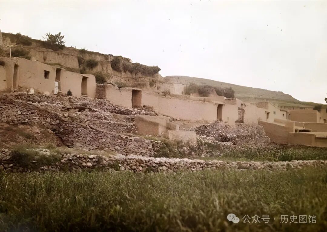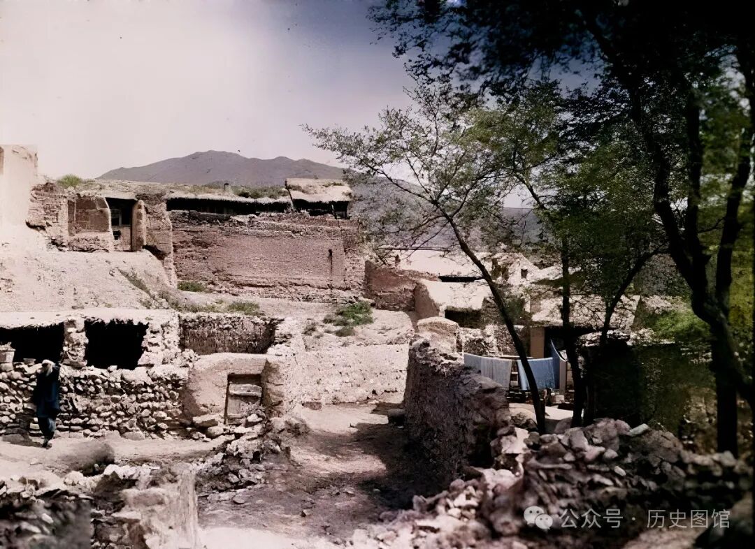 这是一处废弃的村落,房子修建在土崖之下。房前用石块垒砌了一些小路。不过,从照片上看,这个村子看不到什么人。只有一名穿白衣的男子站在房门口。