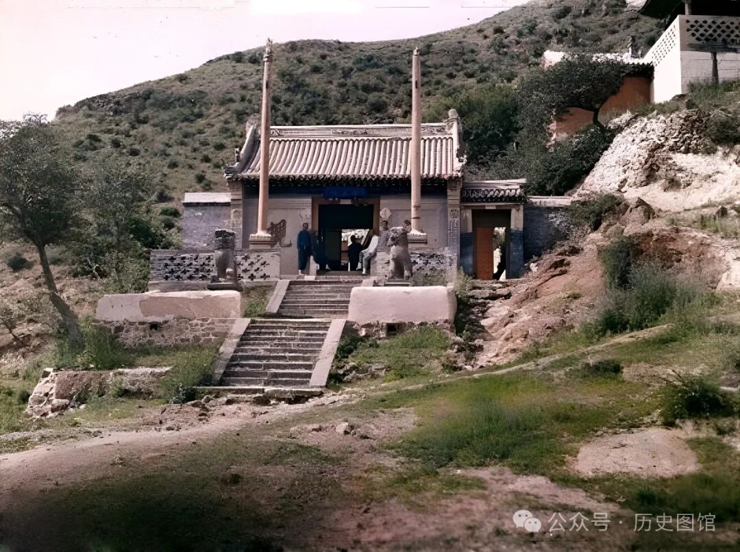 这是张家口郊外山上的一座寺庙。庙前矗立着两根旗杆。有人说这是过去的云泉寺,但是看建筑样式和背后的大山,不像是云泉寺。历经百年,或许这座寺庙早已不复存在。张家口当地的朋友,谁能认出这是哪里呢?
