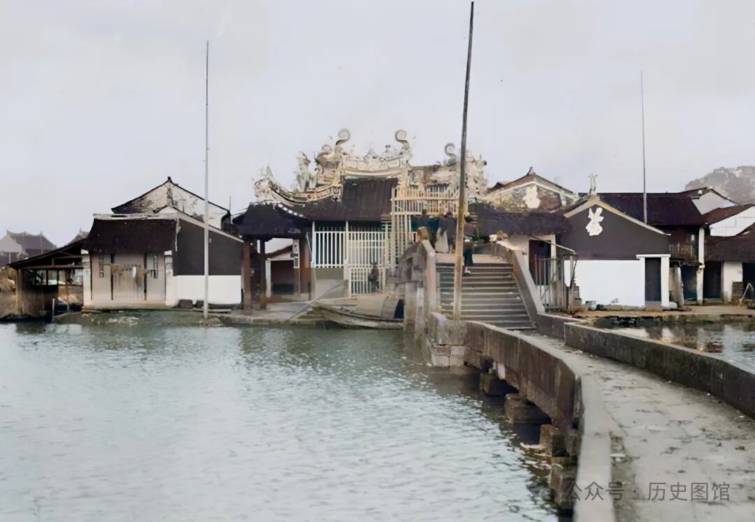 30年代的绍兴柯桥镇,在河边上矗立着一个奇怪的建筑。水面上由几根木棍支撑起一座房屋。这就是柯桥镇的水上民居。旁边,有几只捉鱼的竹篓固定在水里。