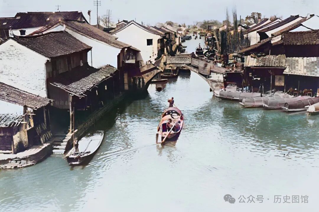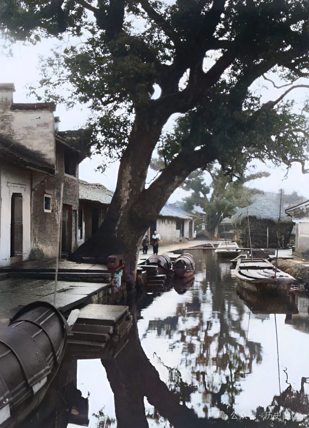这张照片,拍摄于30年代的绍兴柯桥古镇。柯桥古镇,是绍兴市柯桥区的第一大镇,也是浙江屈指可数的著名水乡集镇之一。这里物产丰富、经济繁荣,素有“金柯桥”之美称。