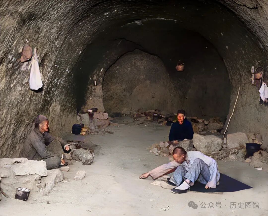 在临潼郊外的一处窑洞里,住着几个乞丐。这是他们的临时避难所,吃饭睡觉都在里面,窑洞墙壁都被烟火熏黑了。在窑洞靠里的墙根处,有几个灶台,属于不同的人。他们搬来几块石头当做饭桌。