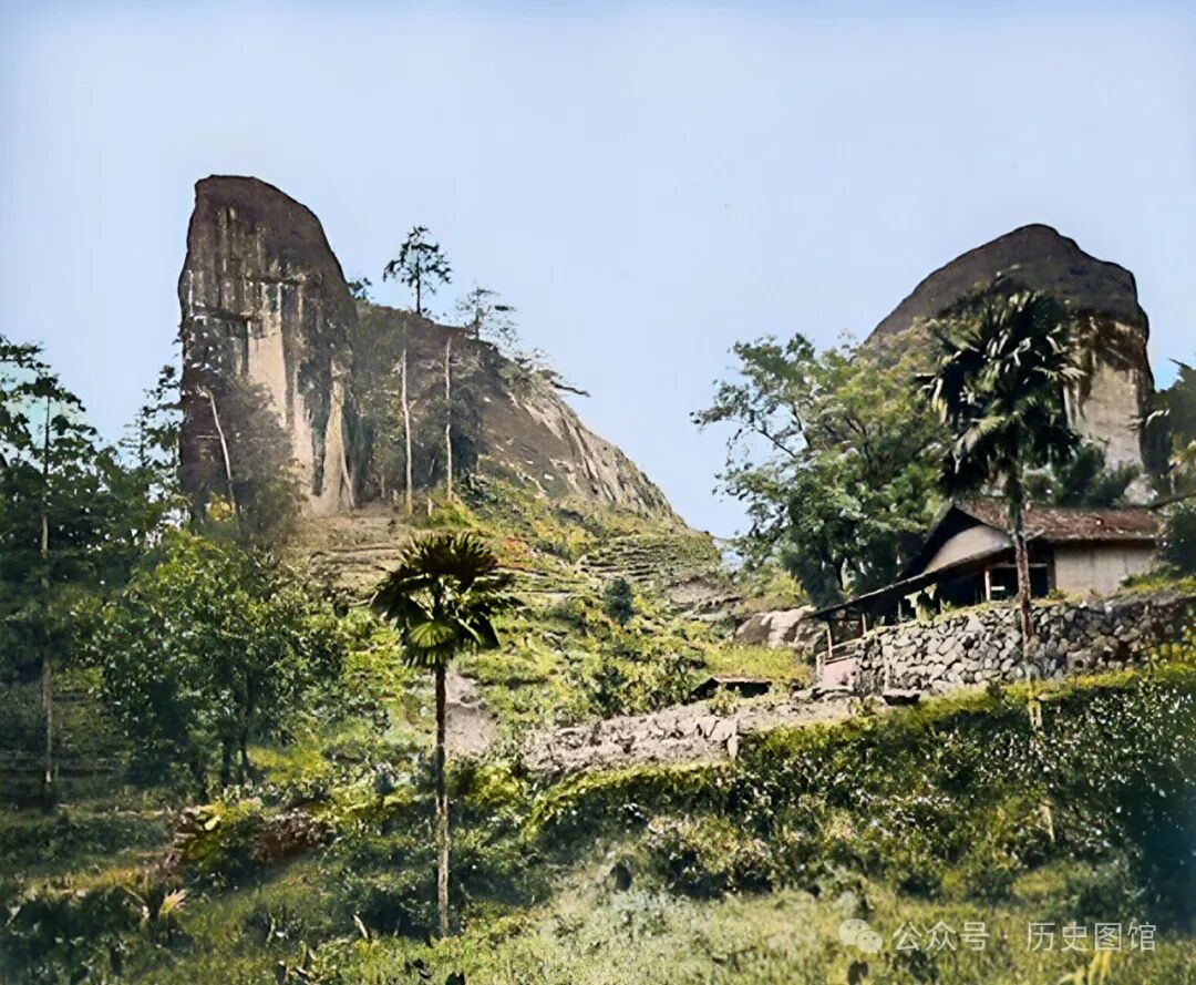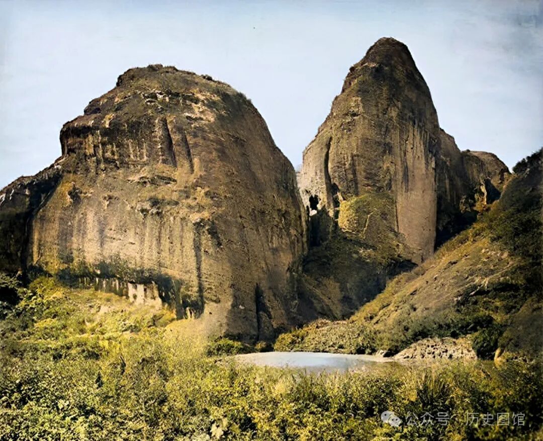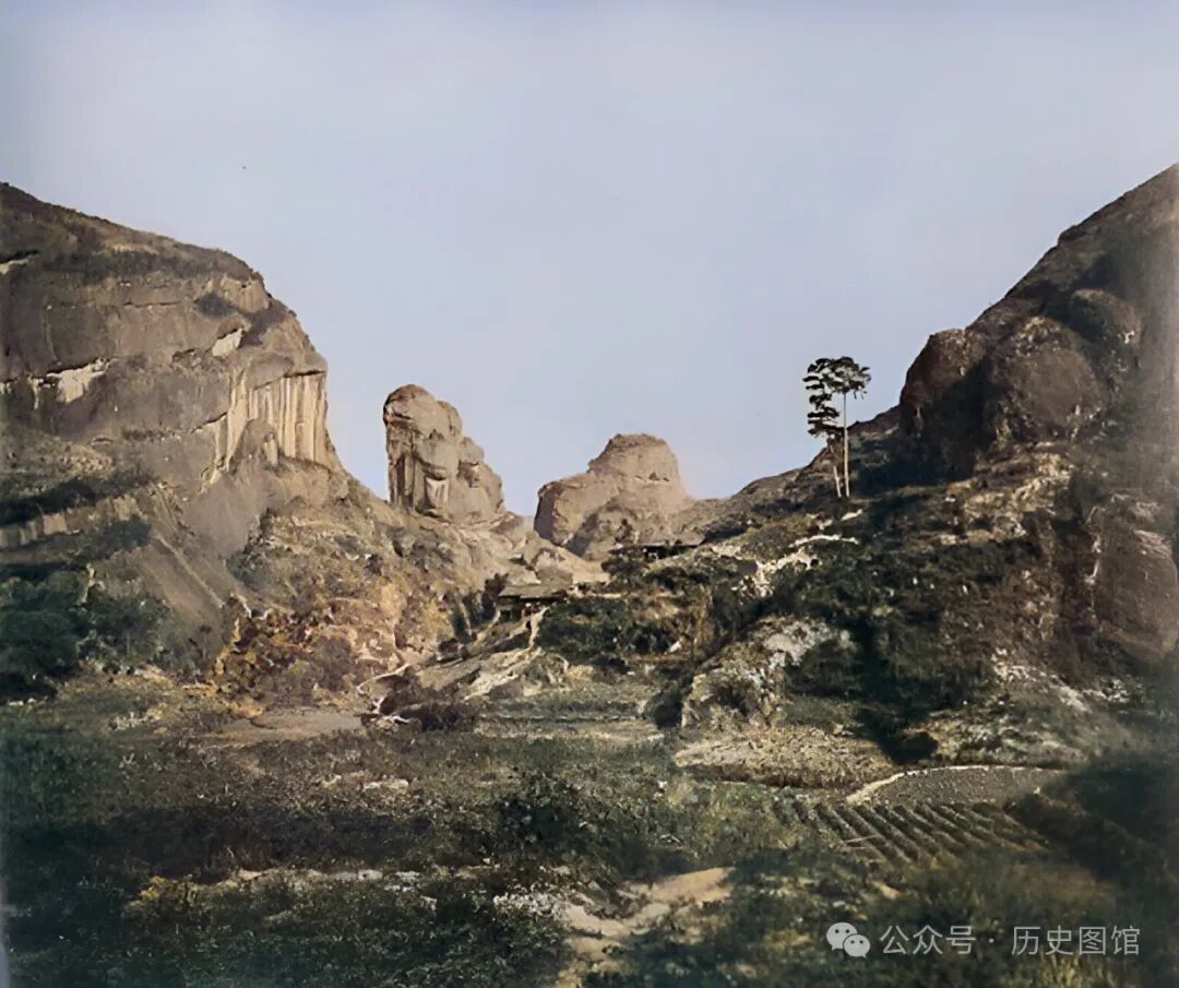 1869年,福建武夷山李仙岩。两座大山之间,矗立着奇特的山峰。山上光秃秃的,山坡上生长着两棵树。