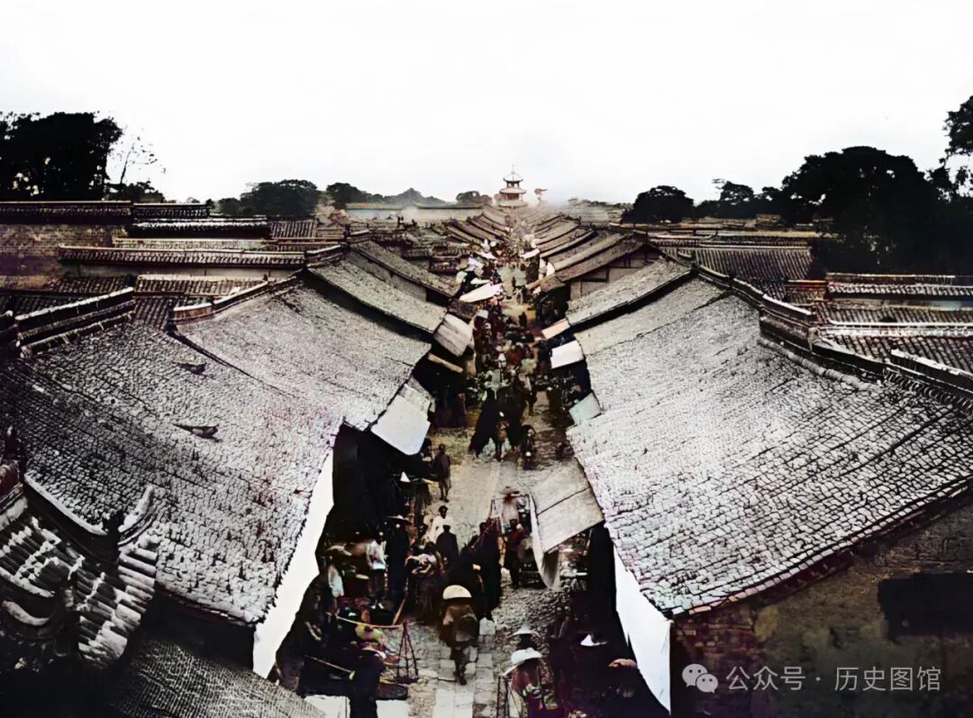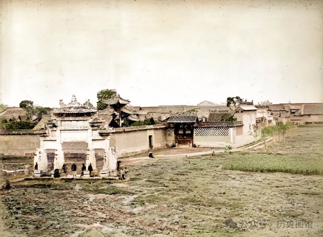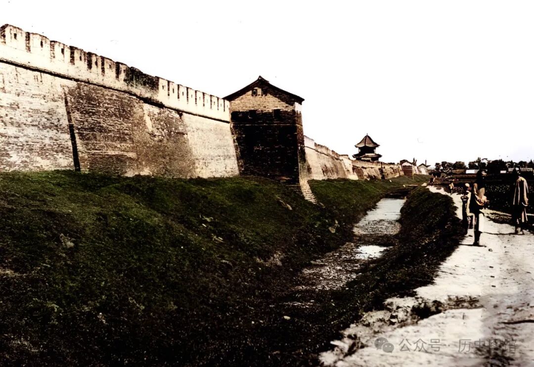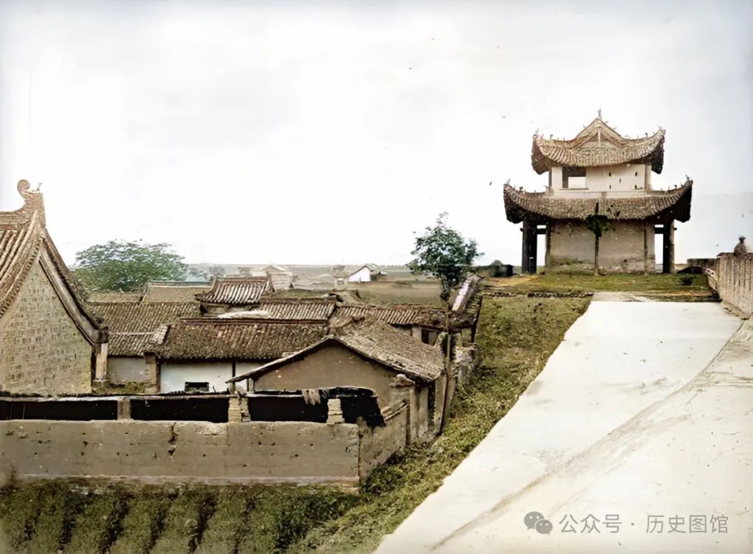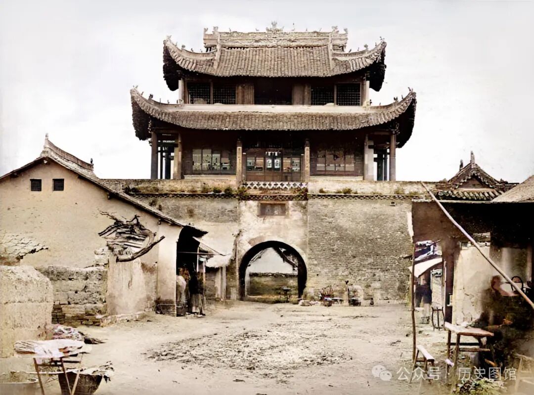 这座雄伟的建筑,就是汉中的北城门。汉中自古便为交通枢纽、战略要冲,城池饱经战火,屡毁屡建。在明清时期,对城墙进行过大规模的修缮。这张照片拍摄于1875年。