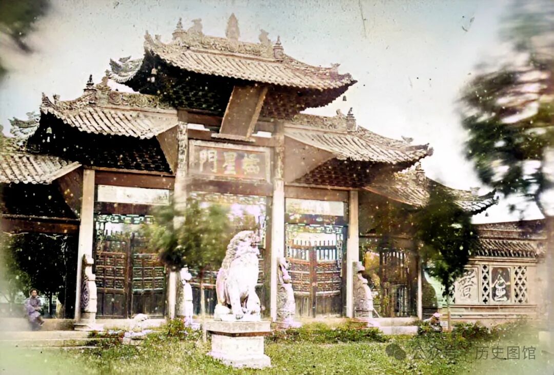 这是100多年前汉中武庙景象,院内亭台楼阁建筑众多。武庙,全称武成王庙,又称武成庙。主要祭祀姜太公以及历代良将。史料记载,宋朝时追封古代名将72人,诸葛亮、张飞、关羽、张辽等九人位列其中。