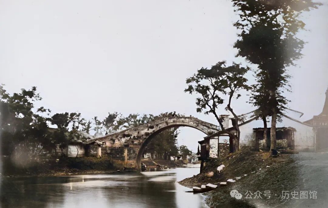 1850年,上海松江大仓桥。大仓桥,位于松江城西,原名永丰桥,始建于明天启六年(1626年)。桥的南面,为明清时期松江府漕运仓城。
