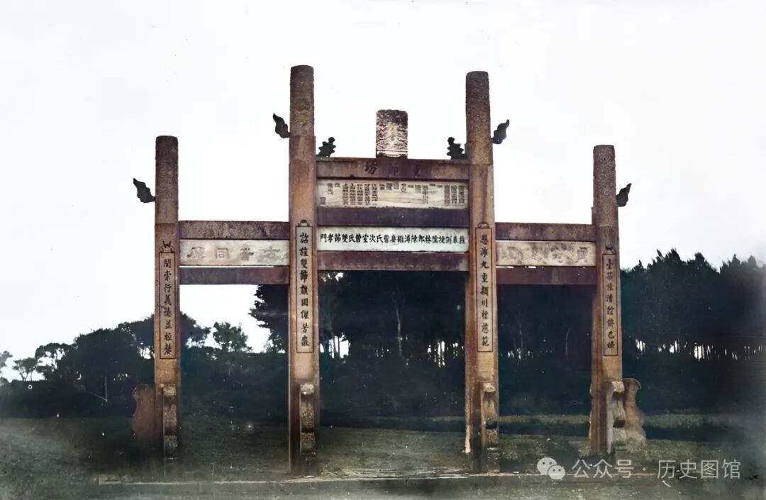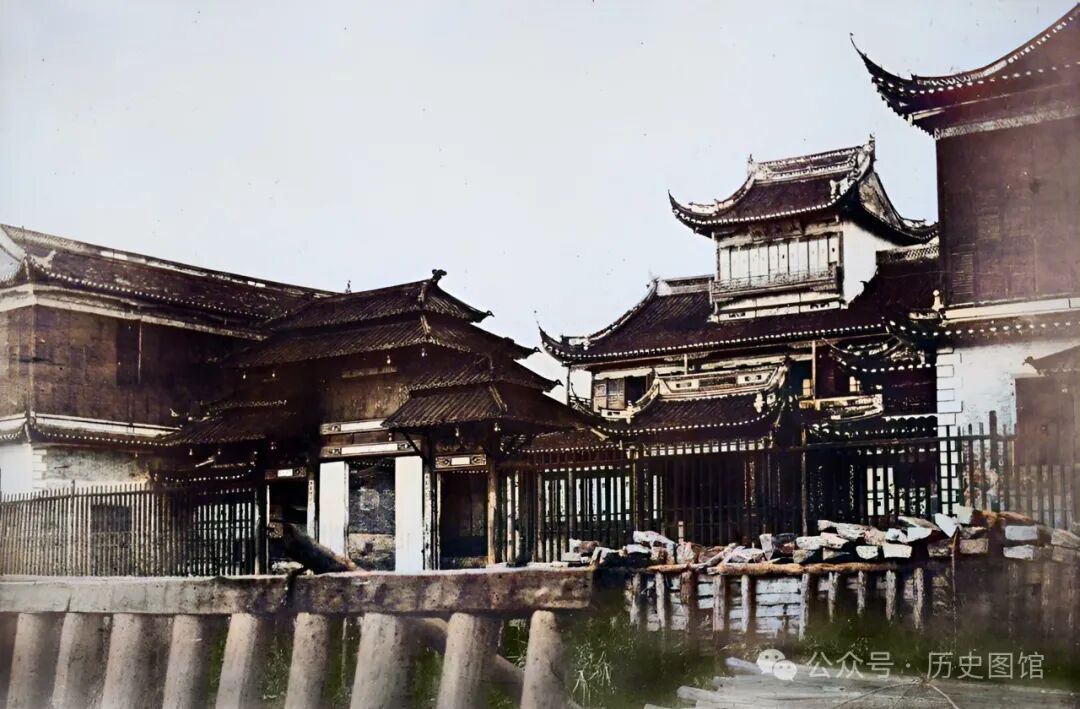 1850年,上海文庙外景象。文庙,始建于元朝至元三十一年(1294年),位于今学宫街。1853年毁于战火,1855年重建于今址。是上海中心城区唯一的儒学圣地、名胜古迹之一。