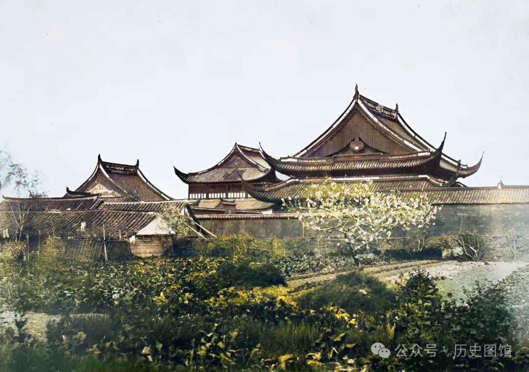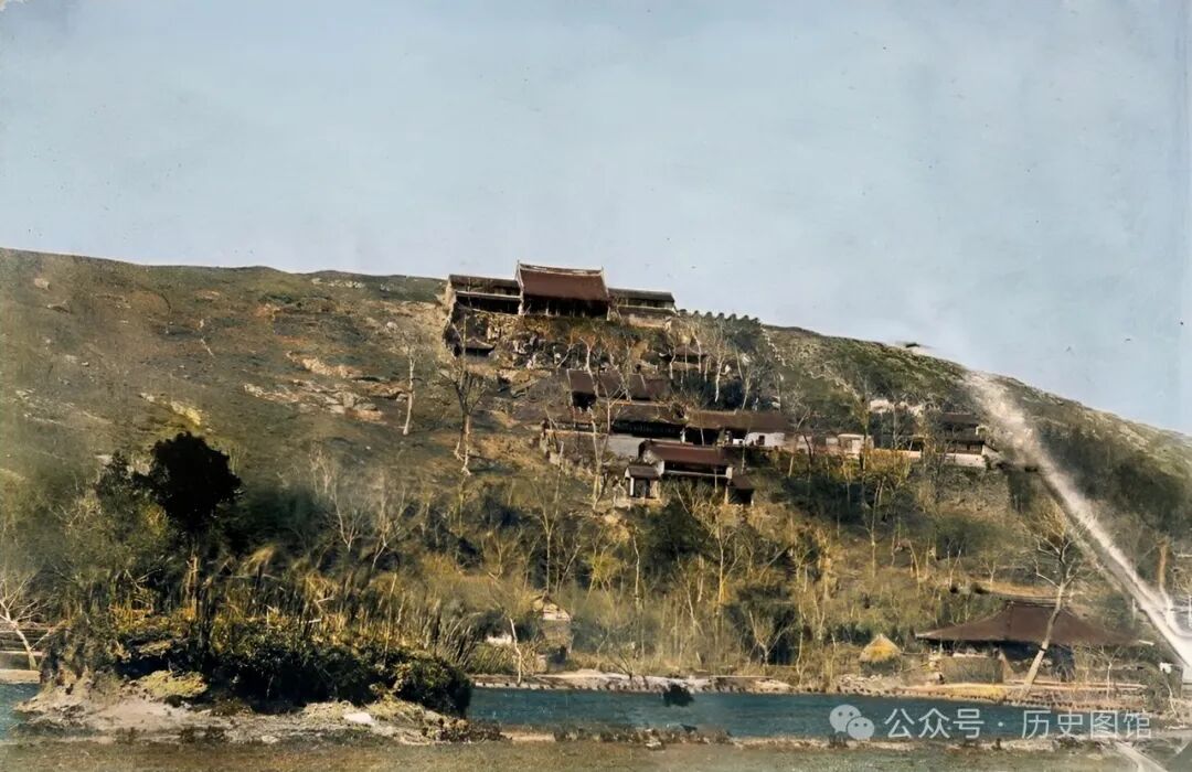 1850年,位于上海郊外的大庙山(青山)寺庙。寺庙依山势而建,高低错落。山上树木不多,光秃秃的。在山脚下有一处池塘。笔者搜集相关资料,没有找到关于照片中所说寺庙的只言片语介绍。