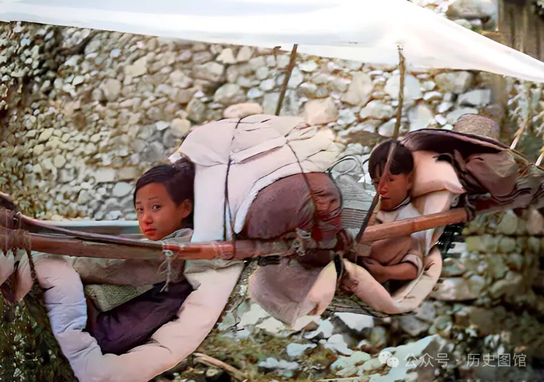 这张照片,拍摄于康定郊外二道桥附近。两名可爱的儿童正坐在双人滑竿上,滑竿上面装有遮阳的棚子。蜀道崎岖,上山下山不易,乘坐滑竿是不错的选择。抬滑竿的轿夫虽然很辛苦,但也能靠此养家糊口。